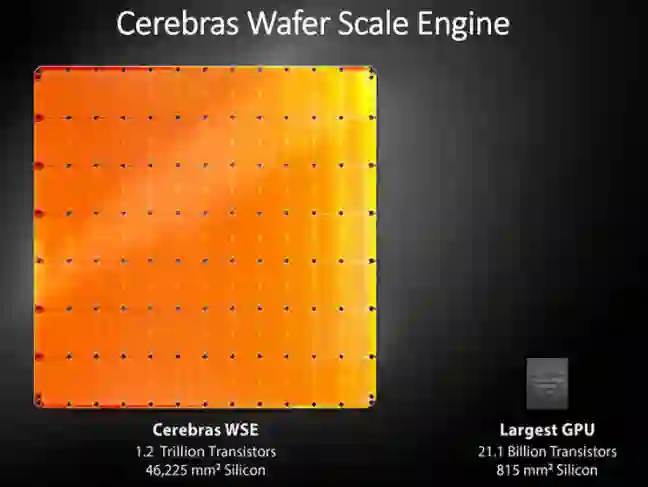 WSE 处理器是专门为深度学习优化设计的,它比最大的GPU大56倍,计算核心是其78倍,芯片内存是 GPU 的3000倍,内存带宽是 GPU 的10000倍。