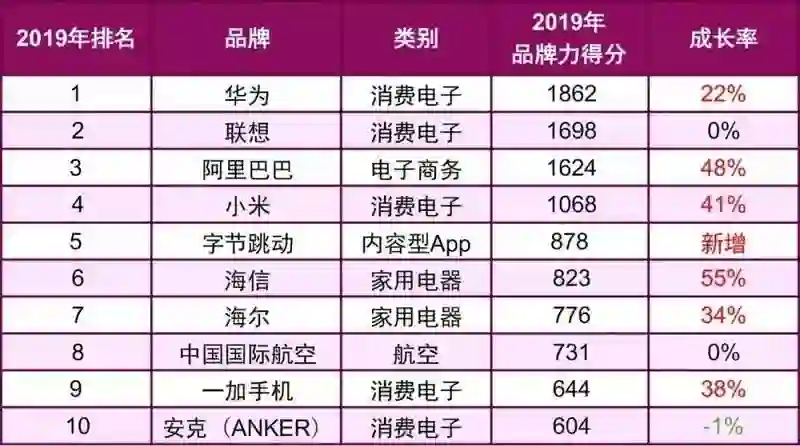 2019年BrandZ中国出海品牌50强:华为、联想、阿里、小米、字节跳动前五