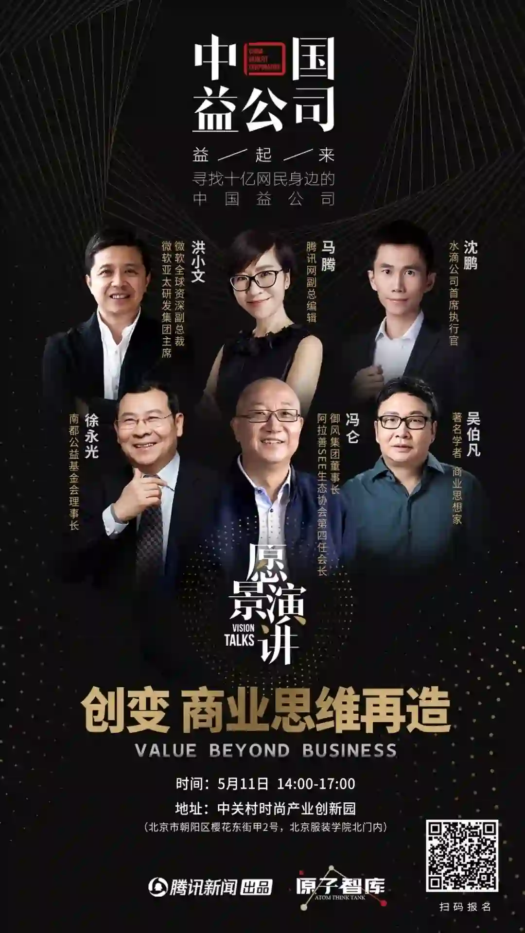 5月11日,由腾讯新闻·原子智库联合中国社科院企业社会责任研究中心、中国扶贫基金会等多家机构,发起的“中国益公司”企业社会责任促进项目,将开启“愿景演讲”环节。