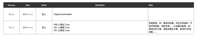 产品在迭代的过程中避免不了对细节的补充与纠正,而这些问题往往是在开发过程中发现或是用户的反馈,并且由设计师与开发、测试口头沟通确定的解决方案。那么这些变更的内容一定要及时的更新在文档中,并把迭代的版本、时间、责任人、内容都写清楚,方便落实也方便以后的追溯。