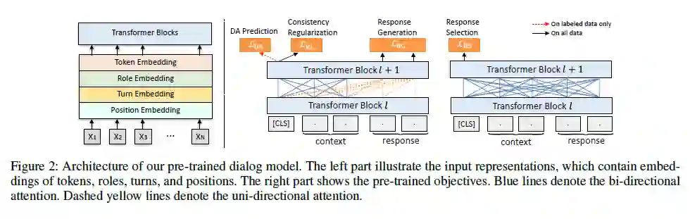 使用现有的预训练语言模型直接在任务型对话数据上进行 fine-tune 无法取得很好的性能,主要原因包括以下两点:一是,对话数据和文本数据的语言模式不同,所以两者的数据分布有很大差异,因此普通文本预训练的语言模型在对话数据上表现不佳;二是,闲聊型对话数据广泛且易于获得,但是它们通常很短,没有明确的对话目标。而任务型对话通常有明确的目标,多轮对话交互,因此闲聊型对话数据预训练模型也很难在任务型对话数据上取得很好的表现。
