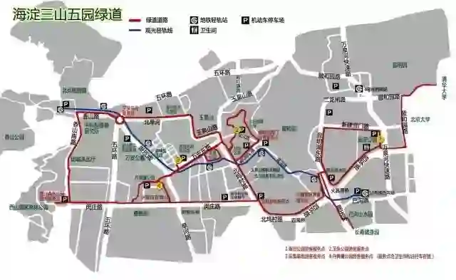 所谓三山五园,“三山”是指香山、玉泉山和万寿山,“五园”是指依三山而建的静明园、静宜园、清漪园(颐和园)及其附近的畅春园、圆明园。北起北旱河,南至昆玉河沿线,东至清华西门,西至香山公圆。天气好的时候可以在绿道内健步、骑行,逛一逛皇上当年欣赏过的美景。
