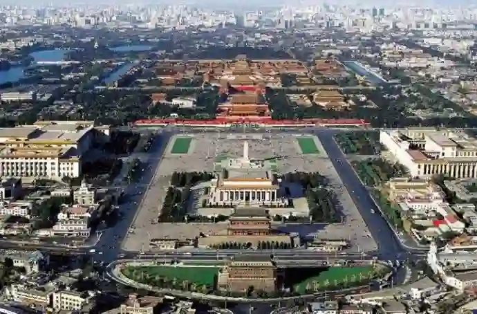 明清北京城的中轴线南起永定门,北至钟鼓楼,直线距离长约7.8公里。
