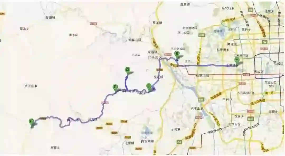 航天桥-模式口-大峪-双峪-戒台寺-潭拓寺-松树岭隧道-贾峪口