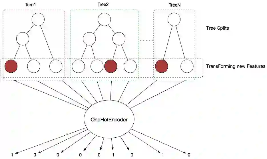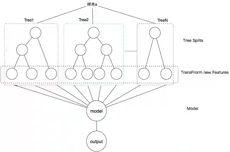 至于构造新特征的规模,需要由具体业务规模而决定。当GBDT中树的数量较多或树深较深时,构造的特征规模也会大幅增加;当业务中所用的数据规模较小时,大规模的构造新特征会导致后续训练模型存在过拟合的可能。所以构造特征的规模需要足够合理。