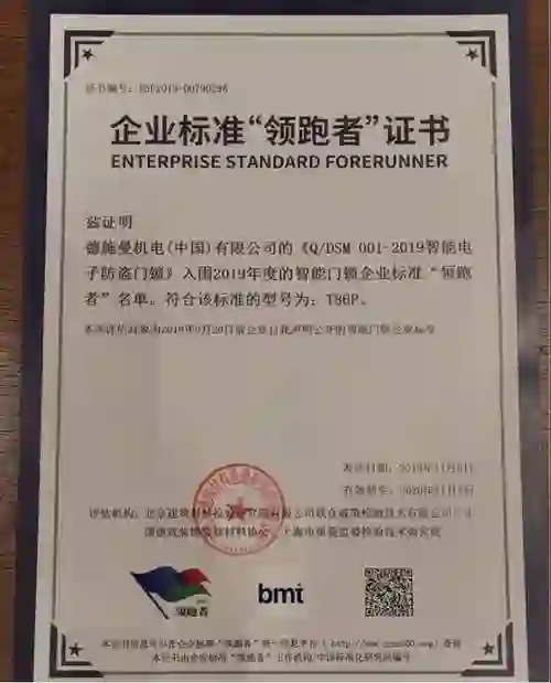 2018年6月,经国务院同意,市场监管总局、国家发展改革委、科技部、工业和信息化部等八部门联合印发《关于实施企业标准“领跑者”制度的意见》提出强化企业标准引领,树立行业标杆,促进全面质量提升,推动建立企业标准“领跑者”制度的要求,其中智能门锁就是企业标准“领跑者”关注的重点领域。