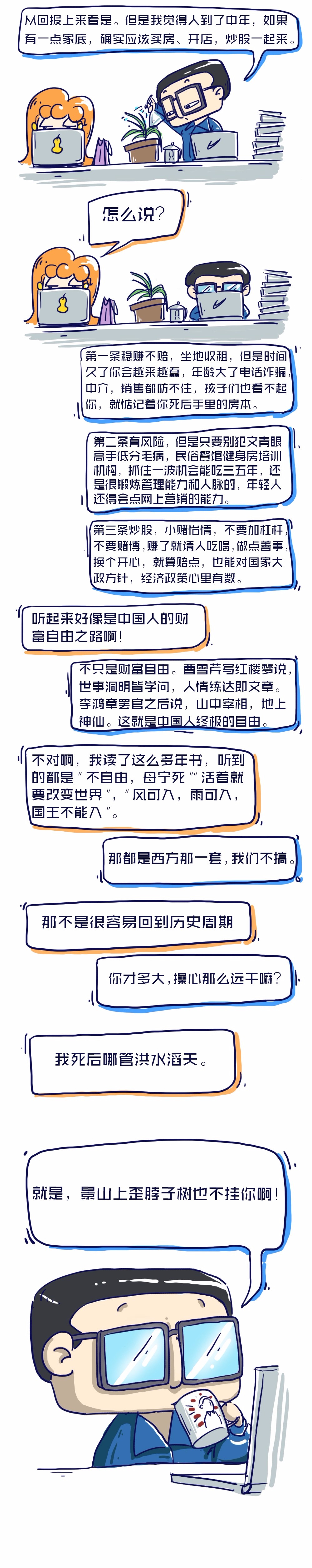 老道消息的读者都知道,我们的编辑部有好几个水平良莠不齐的作者,老编辑、包小姐、碟叔和木村拓周等等。他们每个人的兴趣爱好都不一样,老编辑喜欢批注毛选,木村拓周周末去夜店门口免费表演脱口秀,荣大一姐每天一上班就打开电脑虚拟炒股……