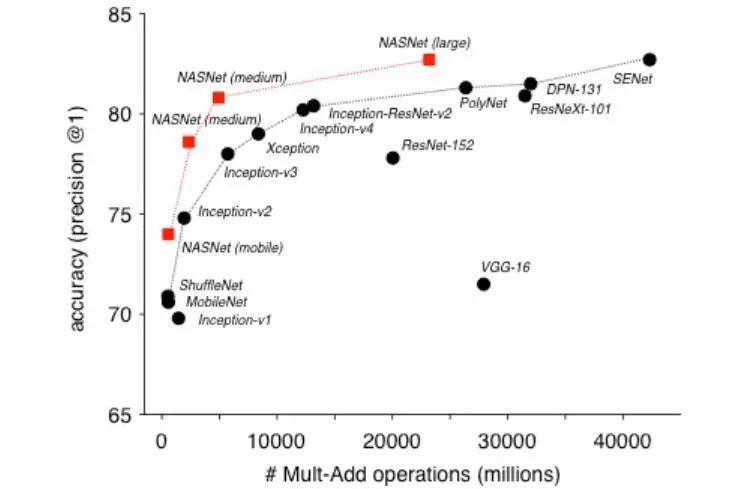 他们使用了强化学习的方法自动化机器学习模型的设计,AutoML 作为一个控制器神经网络创造一个执行特定任务的子 AI 网络。这个被研究人员称为 NASNet 的 子 AI 的任务是从视频里实时识别出诸如人、汽车、交通灯、手提包和背包等目标。