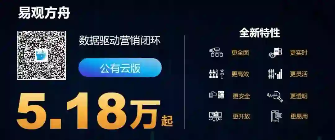 张林了解到易观方舟最大的特点,就是可以实现数据驱动营销闭环,其营销闭环有5大环节,从广告投放渠道的选择,到目标受众人群的细分,再到提升用户的转化效果,进行用户触达,再到最后的整体营销效果分析,易观方舟都能全方位辅助运营,让运营更有效率。