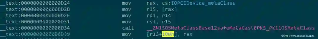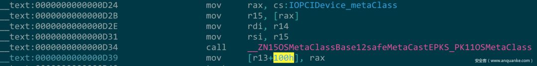 可以看到虚表已经被识别出来的。通过 this->gap[31] = (__int64)v6; 知道,有一个成员变量是 IOPCIDevice,我们在脚本中为类添加一个成员变量: