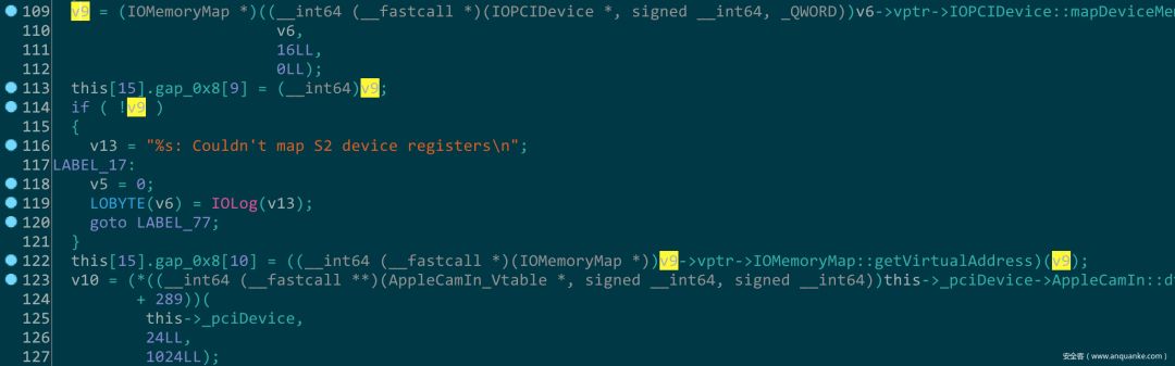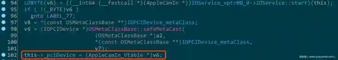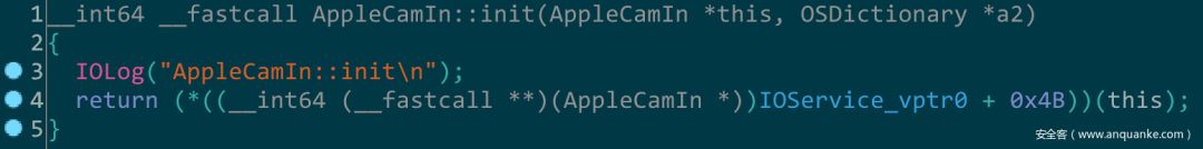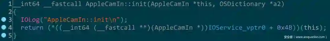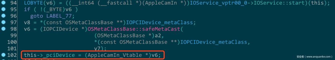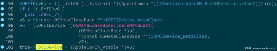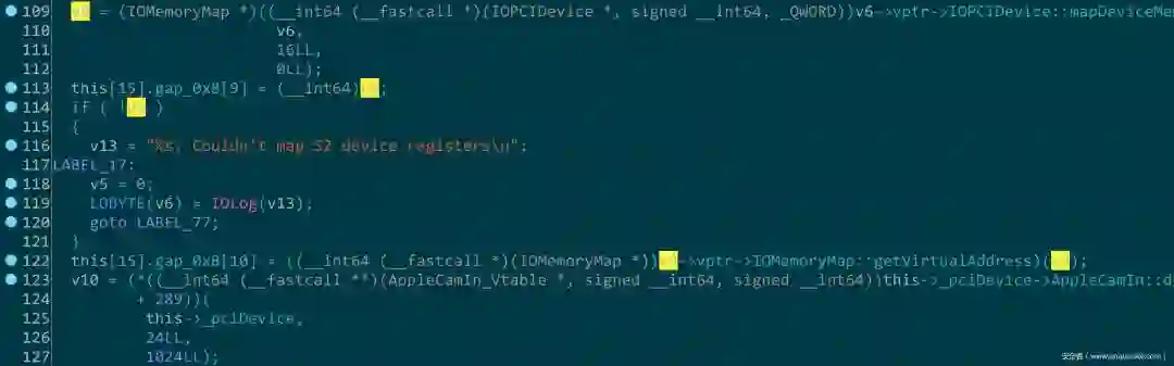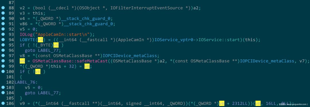 内核扩展中的类对成员变量的设置主要在 init 与 start 两个函数中完成,下面我们以 AppleCamIn::start 为例来说明对类结构的还原。