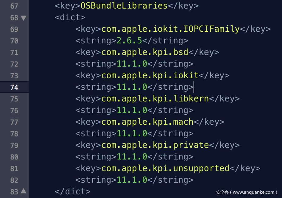 打开驱动的 Info.plist 文件,查看 OSBundleLibraries: