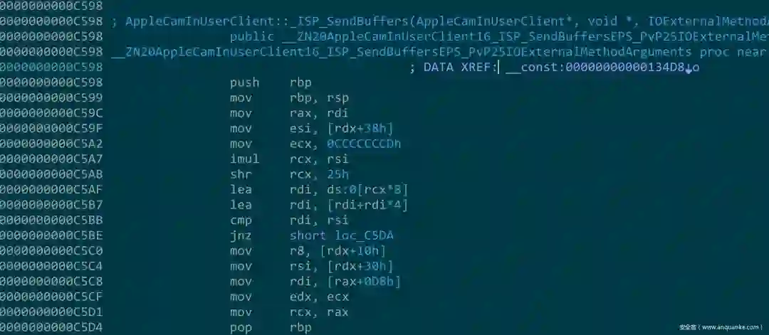 Note:下文会涉及到一些例子,例子使用的二进制是:macOS-10.12.4-16E195, AppleCameraInterface.kext, 5.59.0。