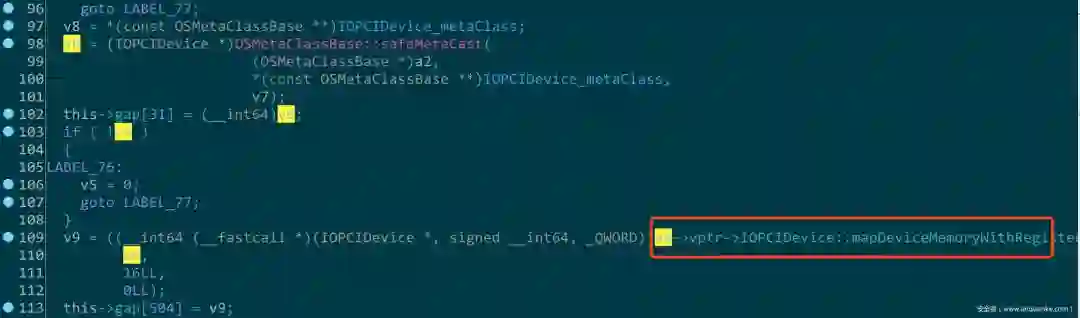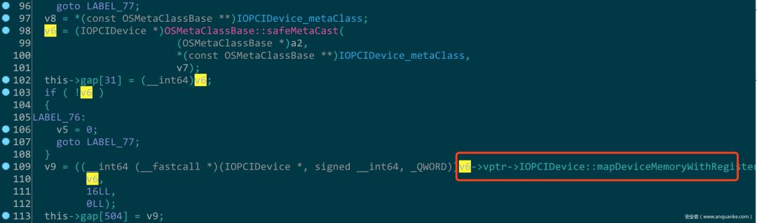 继续识别成员变量,IOPCIDevice::mapDeviceMemoryWithRegister 返回的类型是 IOMemoryMap *,我们将 v9 转换成对应的类型:
