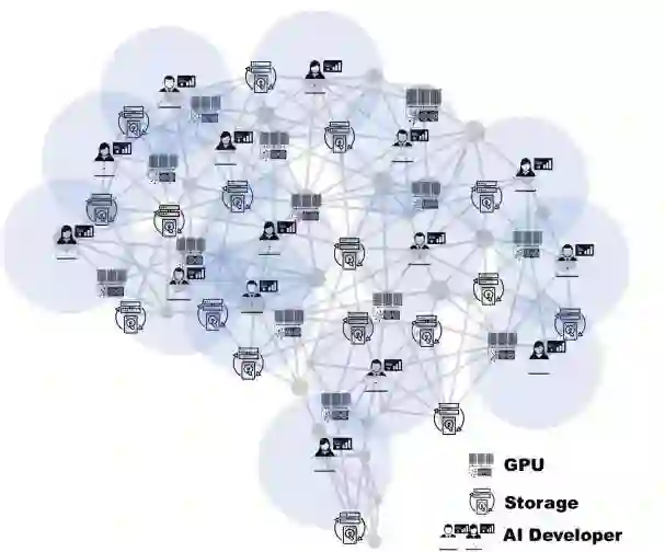 混用硬件共享系统 - Grid Computing 系统以及同等阶层间通信网(Peer-toPeer Network)的模型,以其为基础贯彻实现,参与网络的各个硬件,即数据切换点根据 Resource Allocator 构筑最大效率的方向进行分配。学习机演算而需要的 GPU 资源以及学习而需要的数据们,在网络上形成各自电脑系统网络以及数据系统网络。Resource Allocator 传唤参与演算的各自数据切换点,相关演算输入而使用的数据从最近的数据网络里传唤出来。从电脑效率层面来看,理论上看到最佳效率的盒子,同一数据切换点内的 GPU 活用相同数据切换点内部的数据。还有由于个别 peer 存在的各个数据切换点和其他数据切换点通信时间最短距离的数据切换点,最优先和这些数据切换点进行协作,解决从分散化里发生的通信效率问题。还有不是直接提供在数据系统网络里登记的学习用数据们,而是提供全部处理作业已完成的单纯化数据。在这保安和效率性层面可以减少个别数据切换点的负担。