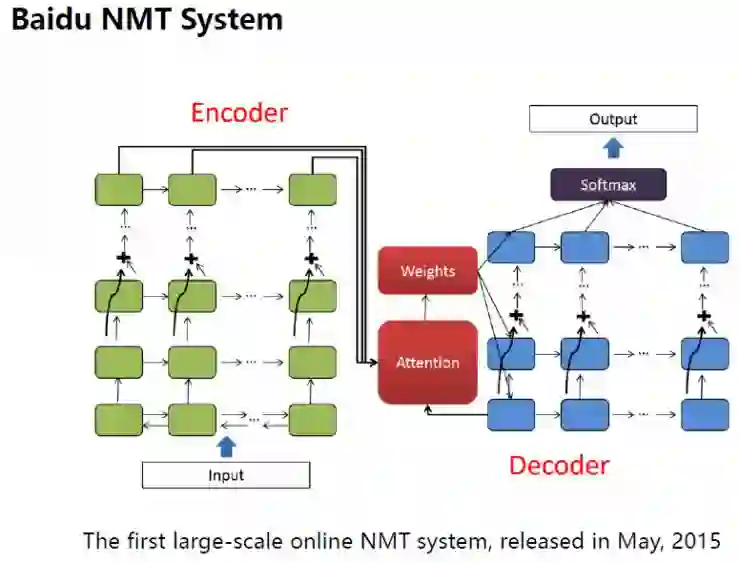 比如,在2015年5月,百度发布了第一个大型在线神经机器翻译系统。基础的NMT模型就是语言无关的,并输出了非常好的翻译结果。为了进一步改善翻译性能,我们使用特定语言特征优化了翻译系统。