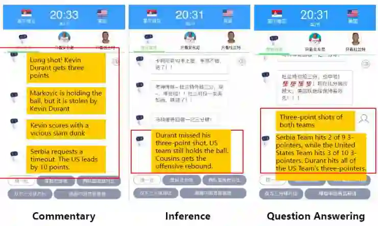 最右边的例子,说明了我们的AI解说员除了解说,还可以同时回答多个观众的提问,而这是人类解说员所不能做到的。