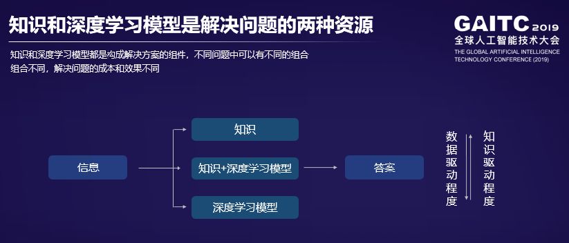 回顾一下,如果仅用深度学习,不管什么样的模型,以及它的网络多深、多厚(且不说这里面不太可能有大量的数据、大量的样本),上述问题没有办法得到解决;传统的做法,完全靠人,完全靠知识,也不能解决这些问题,因为它不能利用计算机的优势,以及 AI 的特征、特点、能力。
