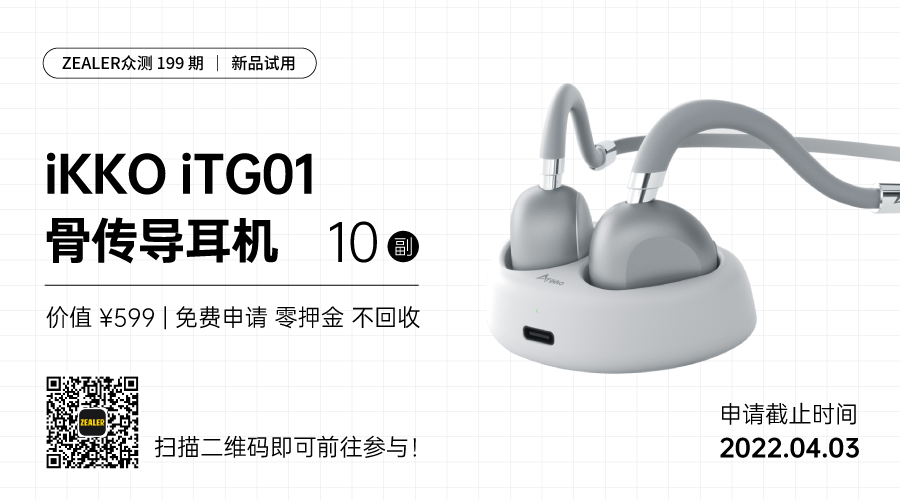 喜欢戴耳机但怕听力受损?你需要一款听歌不入耳的耳机!本期 ZEALER 众测新品——iKKO iTG01 骨传导耳机。全频骨声传导技术,无需入耳即可畅听;蓝牙 5.3 传输,10 米内听歌不掉线;0.04s 超低延迟,玩游戏更畅快…扫上方二维码或戳左下角「阅读原文」即可申请免费试用。