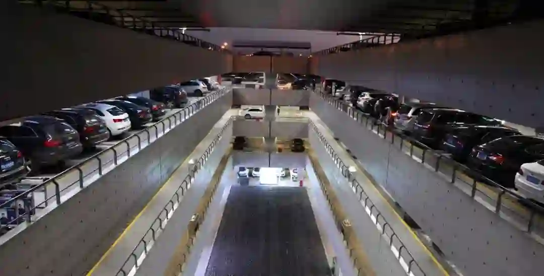 地下停车场昏暗安静,冬天与室外温度相差不多。每三个车位有一个摄像头,对车辆进行图像识别与监控。箭头与区域指示牌明亮醒目,指引司机走到既定位置,直到到达出口,如果司机在手机上付过钱,那么不需停留,杆抬,车走。