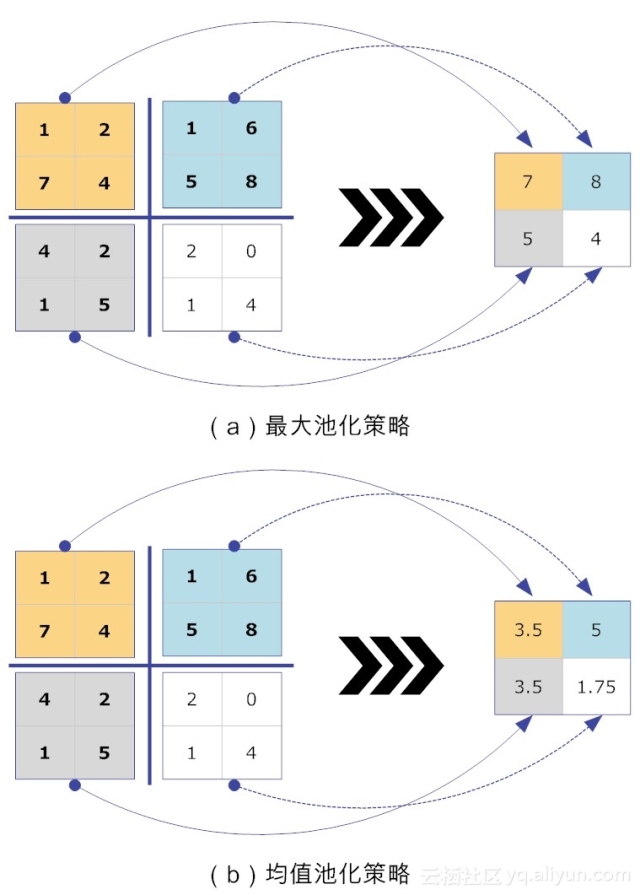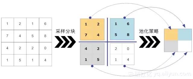 池化层亦称子采样层,它也是卷积神经网络的另外一个“神来之笔”。通常来说,当卷积层提取目标的某个特征之后,我们都要在两个相邻的卷积层之间安排一个池化层。