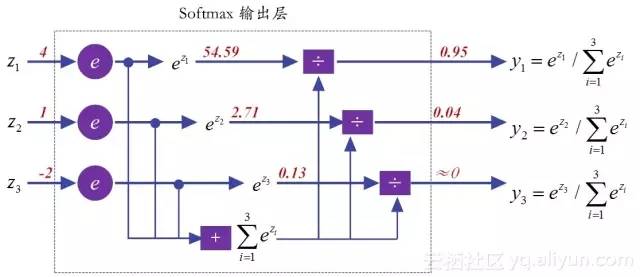 图12-10 Softmax输出层示意图(绘图参考了台湾大学李宏毅博士的工作)