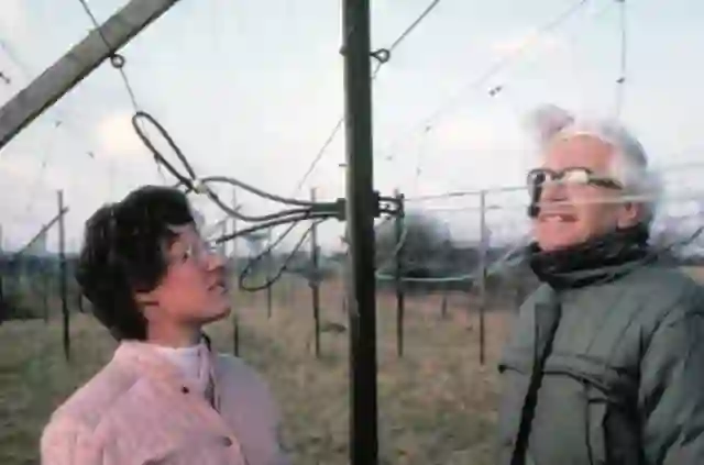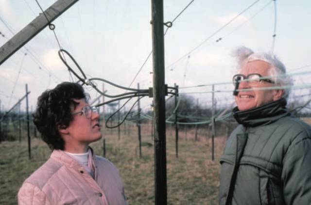 Bell Burnell 博士学习的一部分是跟5 个同事在一块2.5 倍于足球场的场地上建一架射电望远镜。这项任务花了2 年时间,需要不少的力气活。同事们认为女孩子不适合站在楼梯上干体力活,但Bell Burnell 不这么想。她出色的动手能力改变了同事的看法,她们也很快投入到了这项工作中。