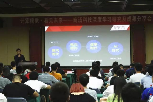 9月20日下午,受聘为浙江大学计算机科学与技术学院兼职研究员的商汤科技CEO徐立博士,携浙大校友、商汤科技研究总监石建萍博士走进浙大,在玉泉校区邵逸夫科学馆给大家带来了一场有关深度学习研究及成果的分享交流会。分享交流会由浙江大学信息学部主任、「浙江大学-商汤三维视觉联合实验室」主任鲍虎军教授主持,两位浙大计算机学院副院长吴飞教授和陈为教授以及「浙江大学-商汤三维视觉联合实验室」副主任章国锋副教授等几位老师与同学们一起参加了分享会。分享会当天杭州密雨连绵,但同学们对人工智能行业的好奇心和兴趣度不减。同学们冒雨前往会场,现场座无虚席,气氛热烈。