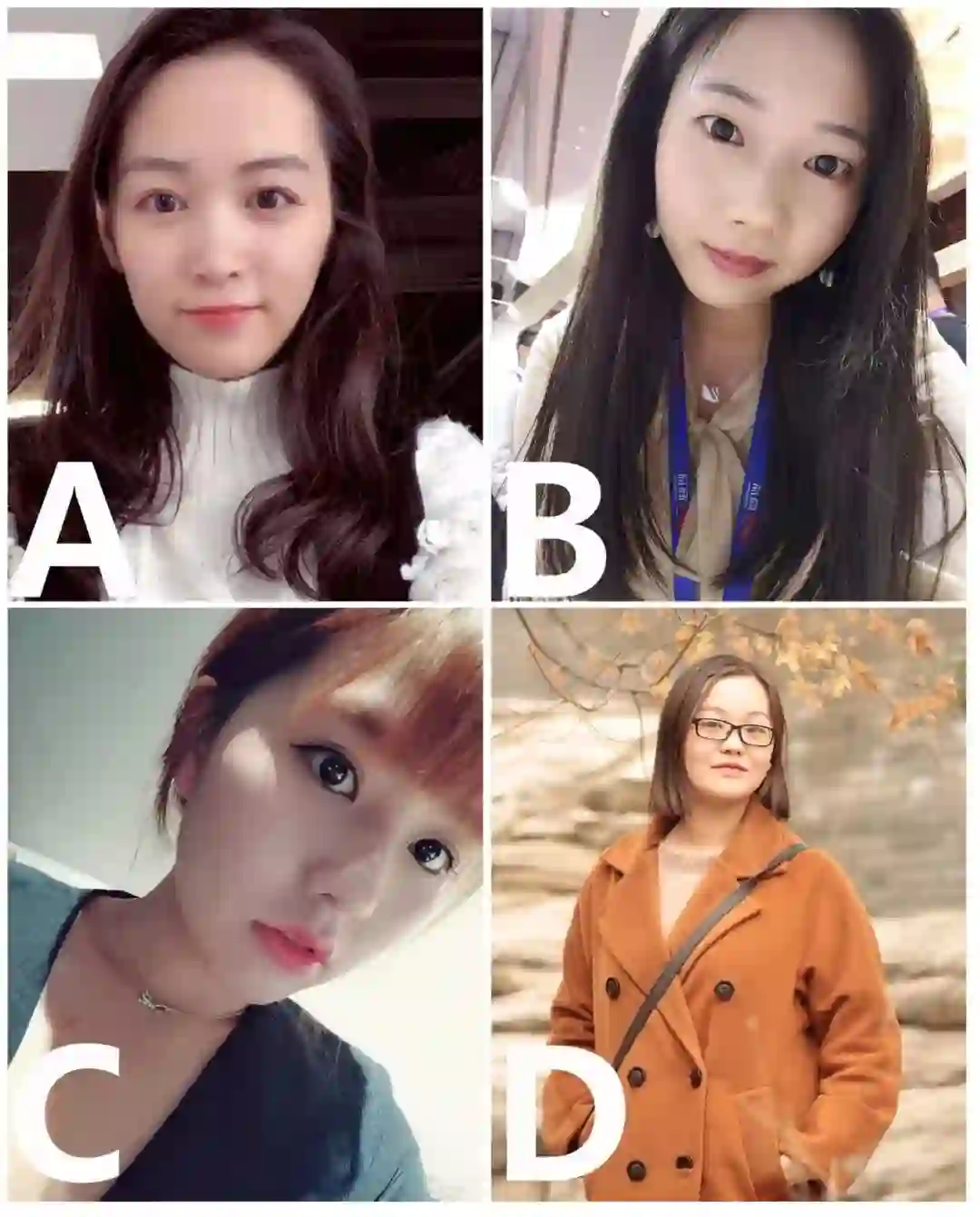 题目3:手机美颜功能的出现,让人们更有自信和乐于展示自己的生活,猜猜看,下面哪一位小姐姐没有使用智慧美颜效果?(25分)