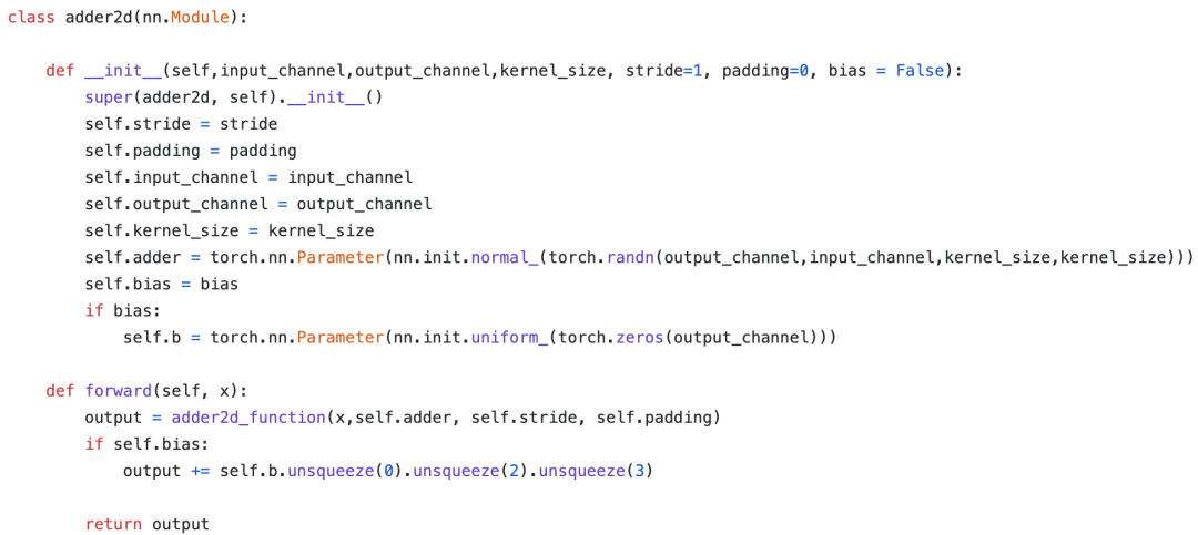 这样backbone就是一个模块,可以随意调用你想要的主干网络,而且还可以自己随意抽取对应的检测头,那接下来我们看看加法网络(AdderNet)的代码: