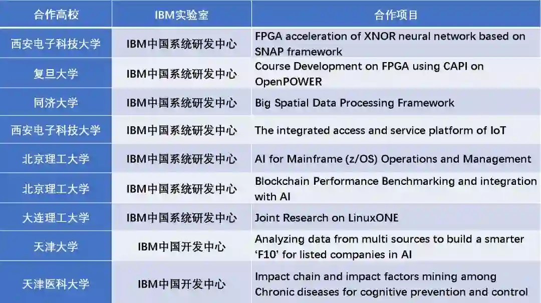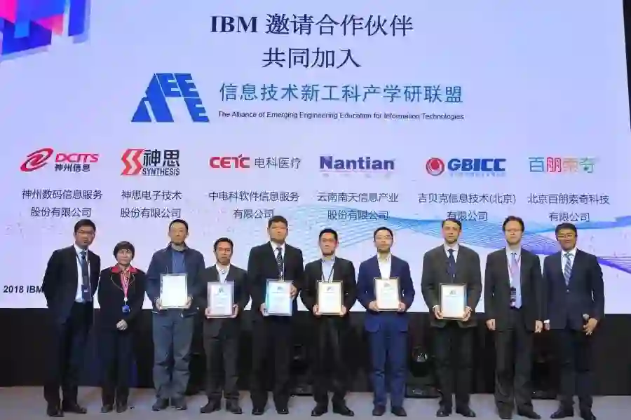 在2018年1月举行的信息技术新工科产学研联盟首届年会上,由教育部与工信部联合指导的信息技术新工科产学研联盟宣告成立。会上,IBM以企业会员身份加入,并携手北京理工大学、清华大学、北京大学等10所高校发起成立“人工智能与认知计算教育工作委员会”,携手哈尔滨工业大学、北京大学、浙江大学等高校与企业发起成立“服务科学与工程工作委员会”。工作委员会服务于联盟内从事人工智能与认知计算、服务科学与工程领域的新工科专业建设、人才培养和理论技术研究与实践的高校与企业。依托该平台,IBM全年共设立教育部-IBM产学合作协同育人项目共计38项,范围涵盖新工科建设、教学内容与课程体系改革、师资培训、创新创业教育改革等领域。