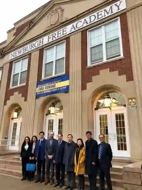 2018年10月底,第四届中美省州教育厅长对话活动在华盛顿举办。IBM邀请参会的江苏省教育厅代表团一行,专程前往位于纽约州的 Newburgh Free Academy P-TECH 学校参观访问,实地考察 P-TECH 教育模式,并向学校教职人员、合作高校以及IBM相关负责人员仔细问询了关于合作模式、课程内容等具体内容。