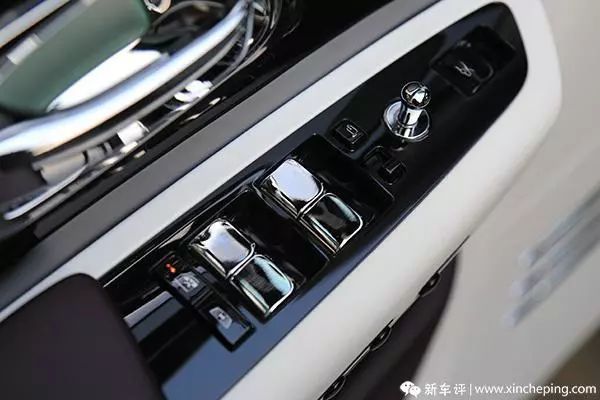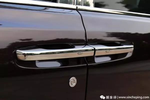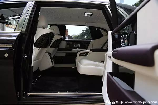 老款车型有个问题,因为车门较重并且有电动机构,所以手动开关的时候感觉很费力。让客户费力这个事情对劳斯莱斯来说是不太合适的,所以新幻影前后车门里面、外面都增加了电动关闭功能。车门把手上增加了两个小疙瘩就是车外关闭的按钮,车内关闭的按钮前排藏在了出风口的上方,后排还在老位置 C 柱那儿。当然,为了安全,车门依然是不能电动开启的。