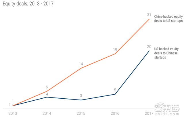 尽管全球AI创企交易宗数来看,中国只占9%的份额;2017年的创企融资金额,有近一半(48%)流向中国创企,首次超过美国(38%),而中国这一数据在2016年仅为11.3%。