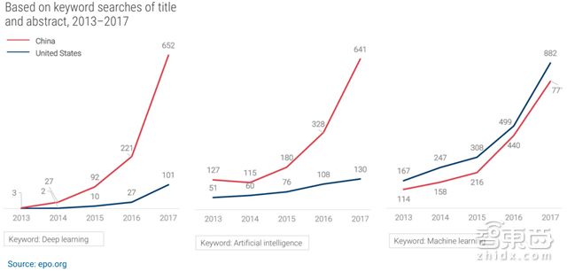从政府计划到多领域创业,中国正在积极执行《新一代人工智能发展规划》等人工智能愿景。在研究方面,中国AI相关的专利公布数量已经超过美国专利商标局公布的数量,深度学习方面更是老美的六倍。