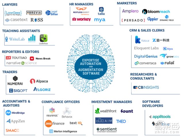 AI加持的专家级自动化及效果增强软件(EAAS)将逐渐渗透律师、顾问、金融分析师、记者、贸易人员等白领工作,威胁相关就业,就像机器曾经威胁蓝领一样。相关创企案例包括: