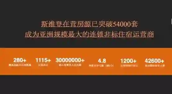 2015年,斯维登从途家拆分出来,开始独立运营。目前,斯维登在营房源已突破54000套,覆盖了280个目的地,成为了亚洲规模最大的连锁非标住宿运营商。