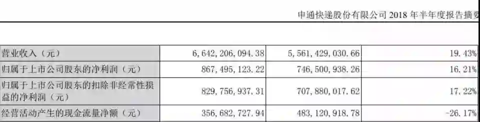 以申通为例,2017年后净利润增速就在不断地下滑,2018年上半年的净利润增长仅为16.21%。