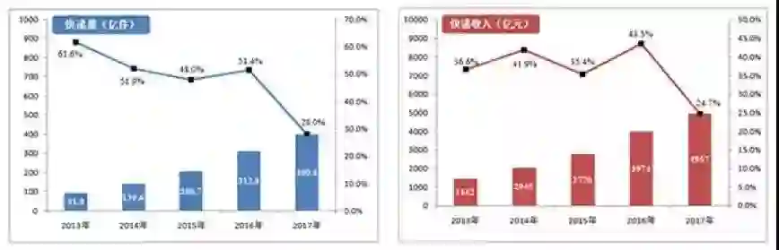 (图片来自中国邮政局2017年邮政行业发展统计公报)
