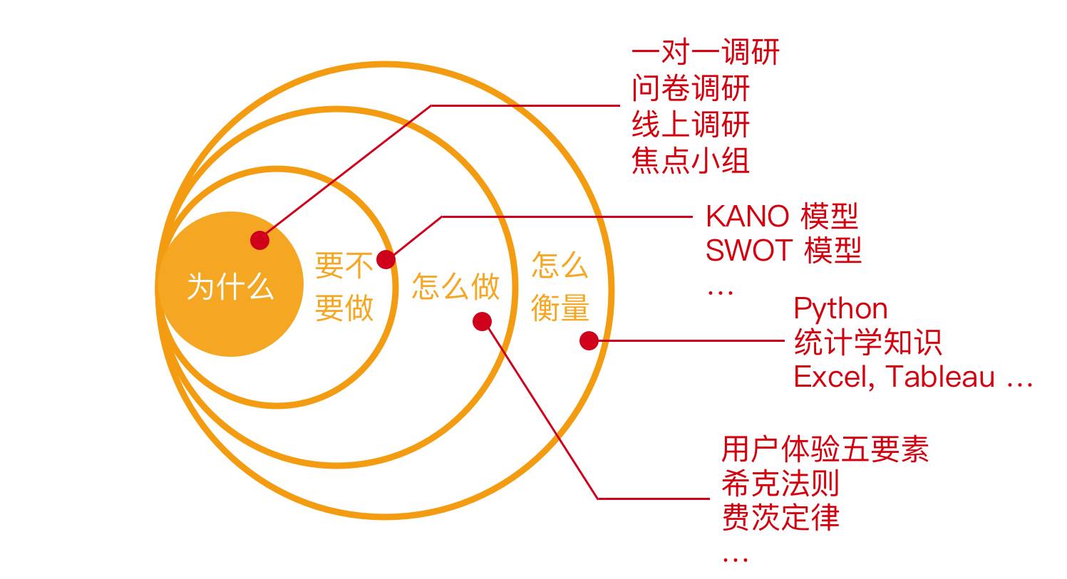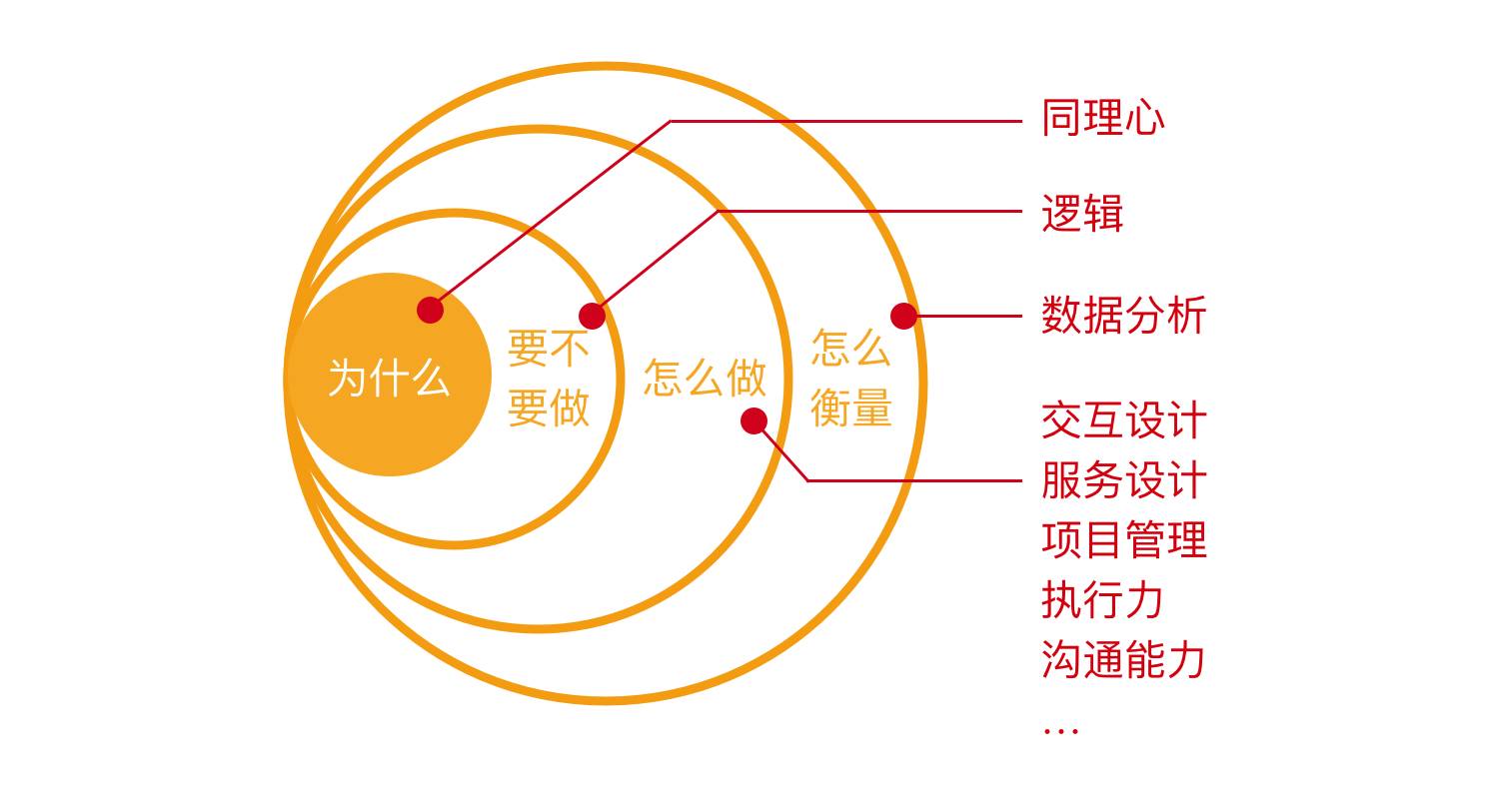 另一方面,我也将产品经理以及产品设计师的一些能力,往这个圆形靠,得出了这样一幅图:
