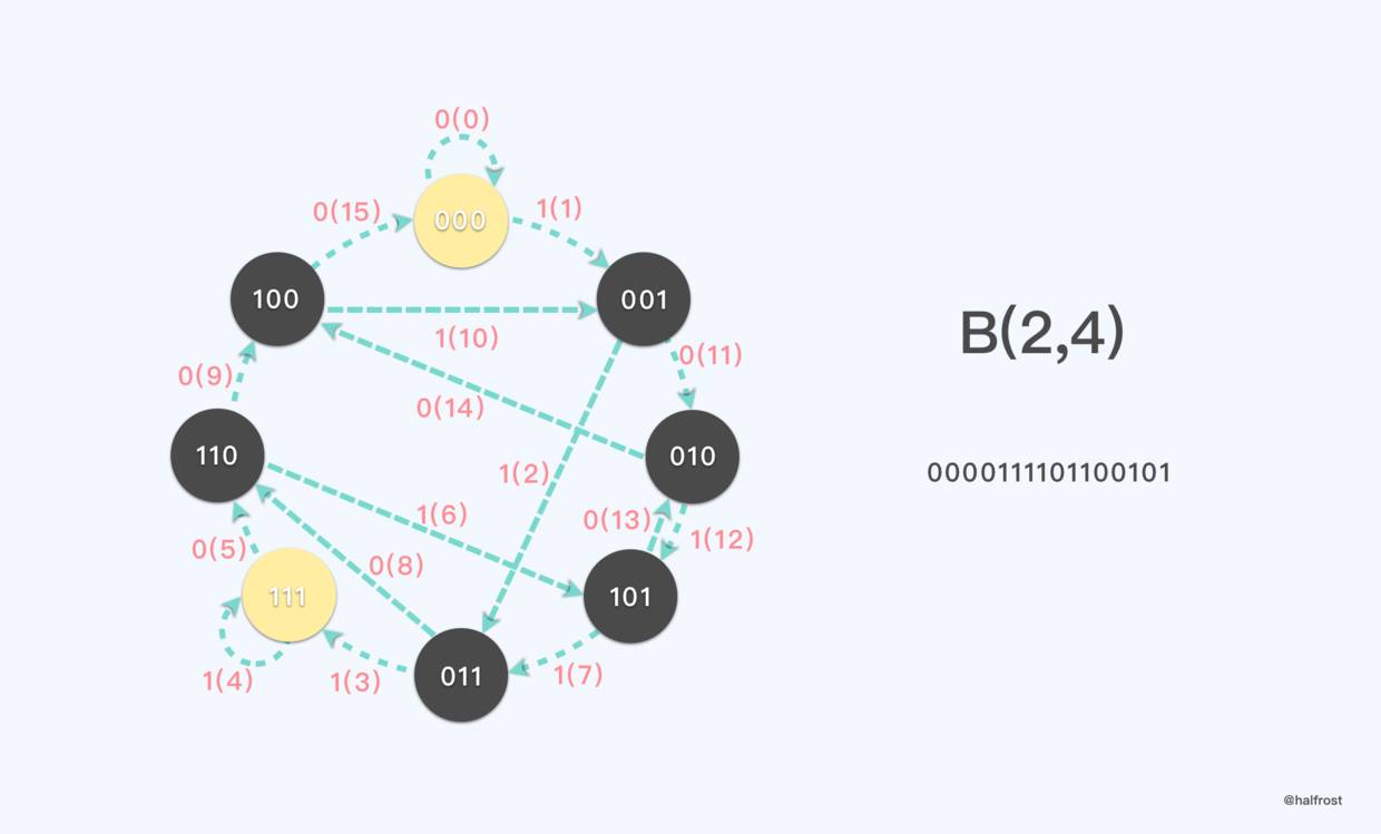 这个魔术中选取的德布鲁因序列也非常特殊,是可以通过一部分的递推得到。