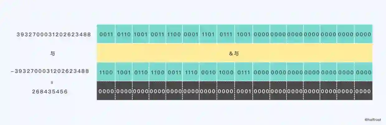 由于这个二进制数是我们筛选出来的特殊的二进制数,原来的二进制数的末尾的1被我们筛选出来了。它本身其实就是二的次方,所以任何一个数字乘以这个特殊的二进制的数,都相当于左移运算。左移的位数就是原二进制数末尾1所在的位子。