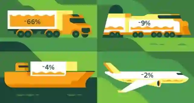 如上图所示,在美国国内每年运输的上百亿吨货物中,有 66% 使用公路货运,9% 使用铁路运输,4% 使用水运,2% 使用空运或其他联运方式。剩下 19% 则是通过管道等固定基础设施来运输的。