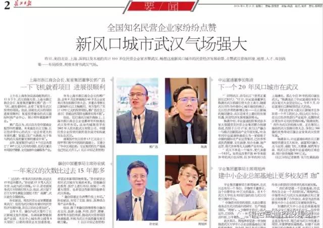 身为上海市浙江商会会长的郭广昌,去年9月还率领商会60多名企业家来汉参加招商引资大会,并重点考察长江新城和长江主轴规划,双方签约了共计1292亿元的投资项目。郭广昌在会上表示,“目前这些项目也都落实得不错”。