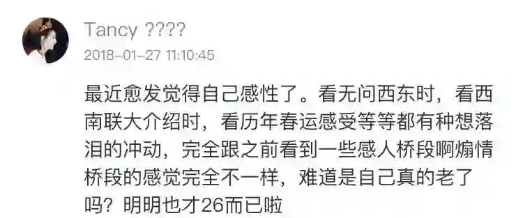 何似:看到一个说法,说人年纪大了,眼泪就多了。我倒觉得这和年纪没多大关系,只是流经的岁月让你看到了更多的东西,感受到许多不曾感受过的情感。自然而然的,内心就更加有波澜。