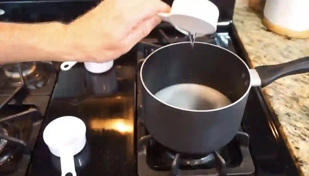 1 在锅内倒入白糖和玉米糖浆(或硬糖),放入适量水,加热让糖浆变稠。
