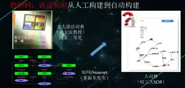 但是在自然语言处理领域,还是要有大量的显性知识的,但是构造知识的方式也在产生变化。比如,现在我们开始用自动的方法,自动地去发现词汇与词汇之间的关系,像毛细血管一样渗透到各个方面。