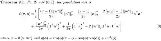 本文证明了在高斯分布的输入和l2损失的条件下:
