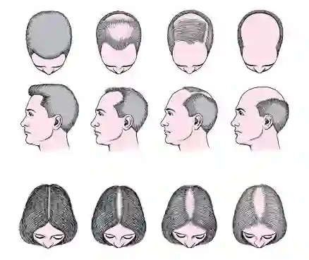 目前来说,脱发主要划分为三种,分别是雄激素性脱发,瘢痕性脱发以及斑秃。