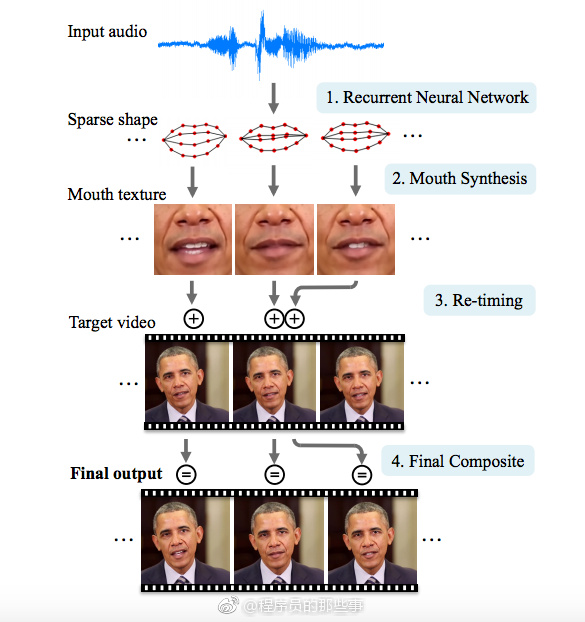 早在 2017 年 7 月份,美国华盛顿大学发布一项新研究,基于现有公开的奥巴马音频和视频片段,人工智能(AI)软件可生成了高度逼真的假视频。口型几乎完美!!!